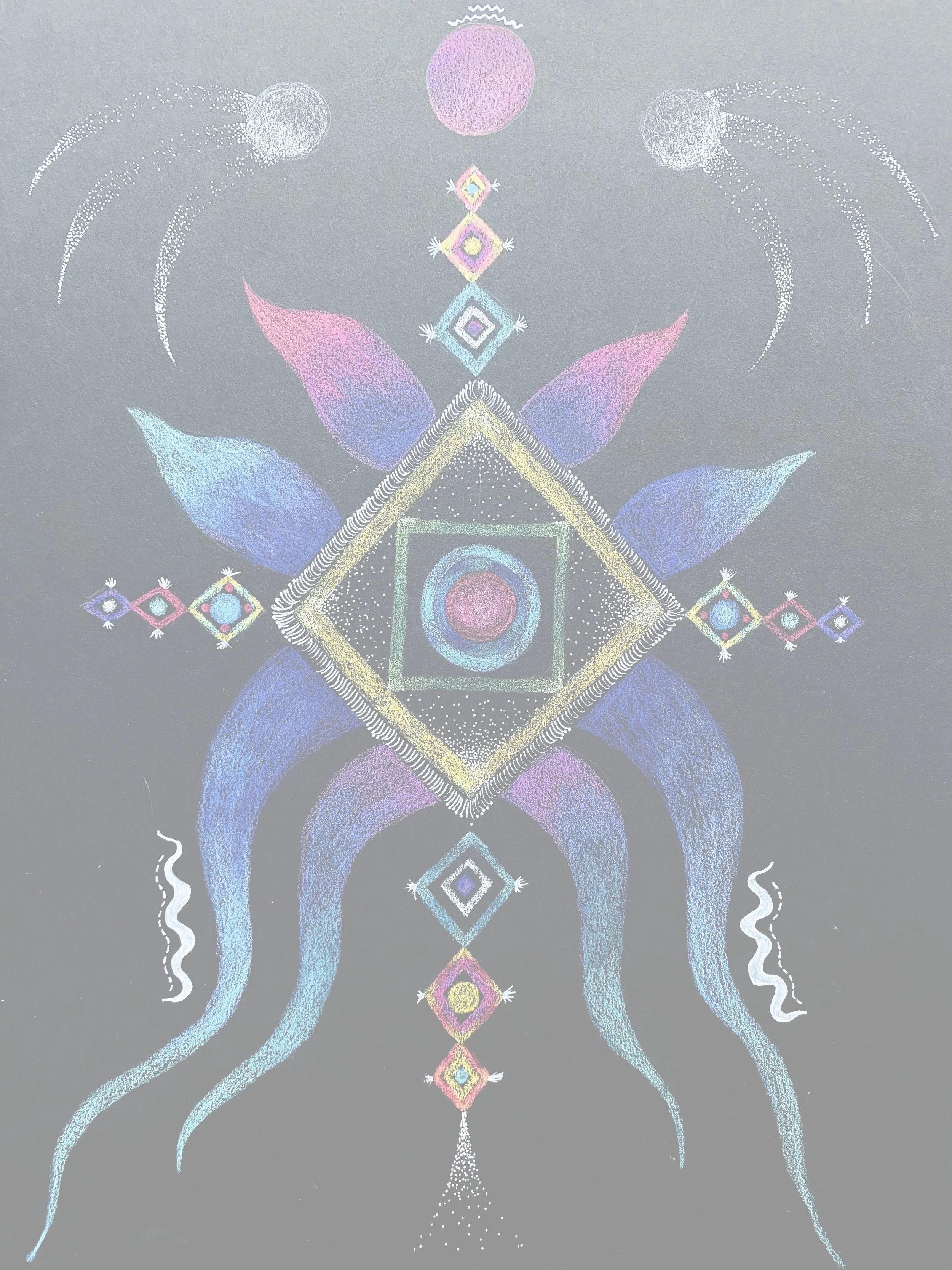 Je crée des dessins abstraits conçus pour harmoniser un lieu, calmer les esprits, rééquilibrer les tensions visibles ou invisibles d’un espace de vie ou de travail. Inspirée des dessins actifs, de géométrie sacrée, de sigils et symbolismes, ces oeuvres sont destinées à vous plonger dedans, les utiliser de manière active pour fluidifier votre espace, accompagner vos méditations et vous offrir un souffle dans un monde rempli d’images figuratives.